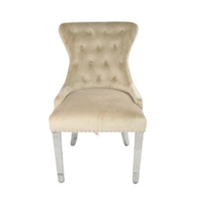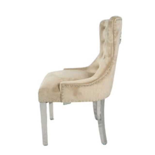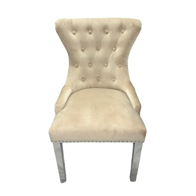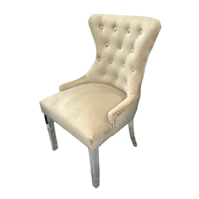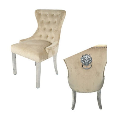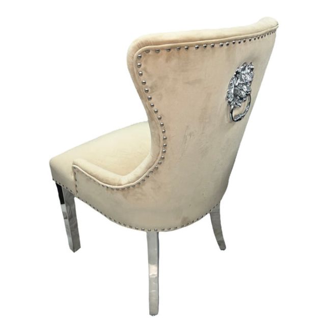 Chelsea 01 Cream Chair (Lion Knocker/Chrome Legs)