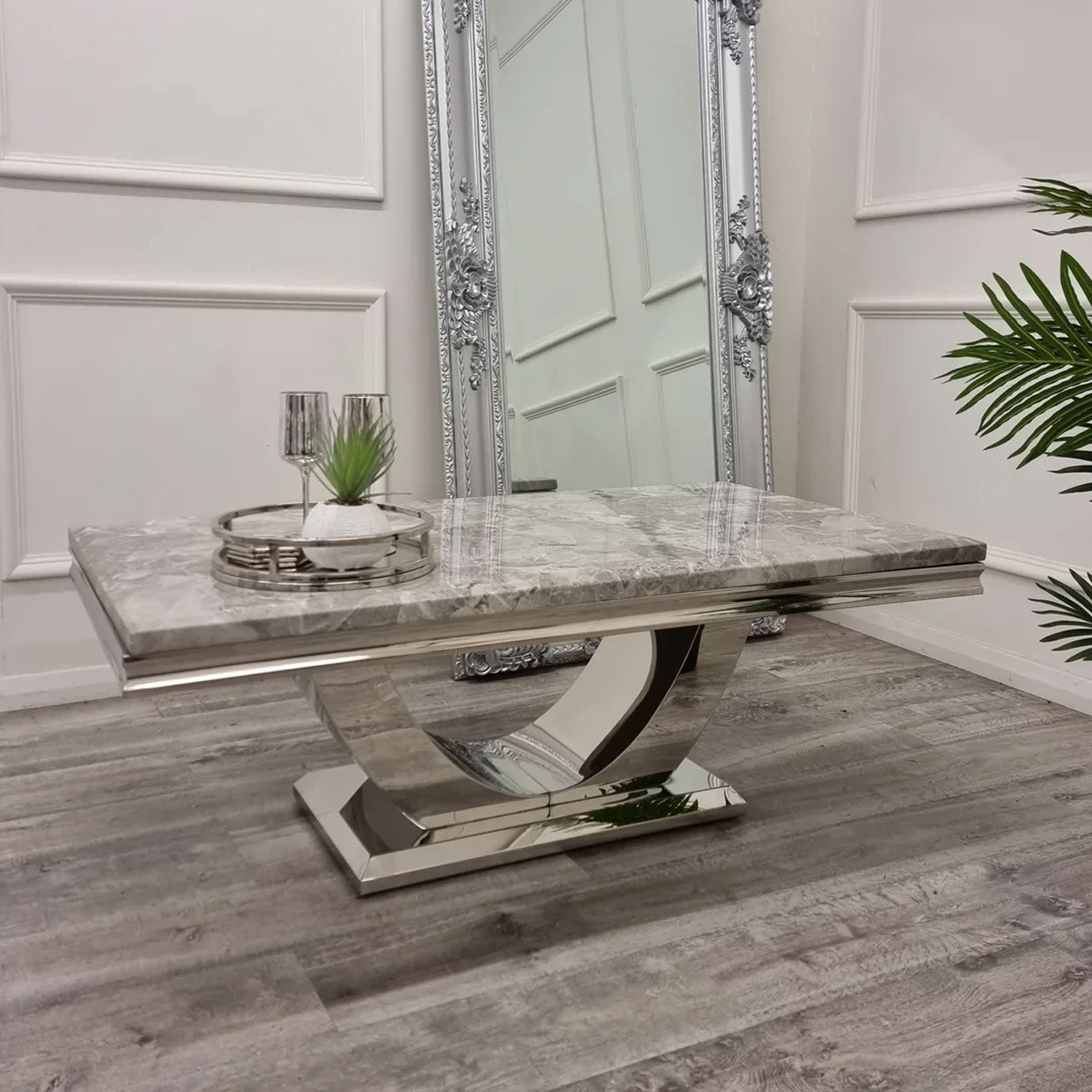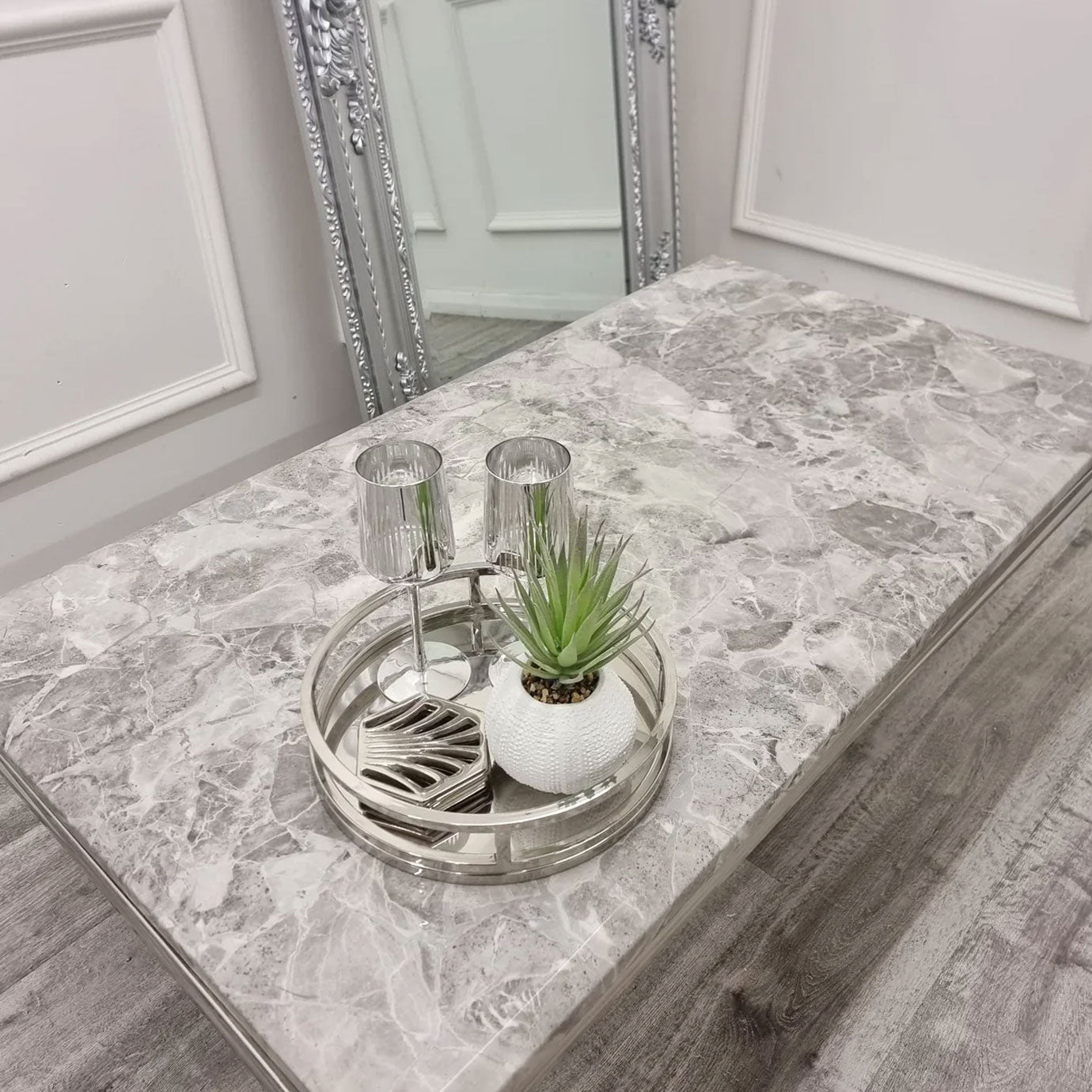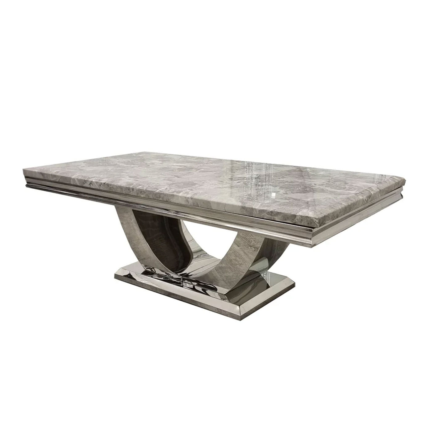 Ultra Chic and High End, the Chelsea is the Ultimate Collection for Those Who Crave Style and Glamour. Its Unique Marble Top is Supported by a Polished Stainless Steel Double Circular Base.