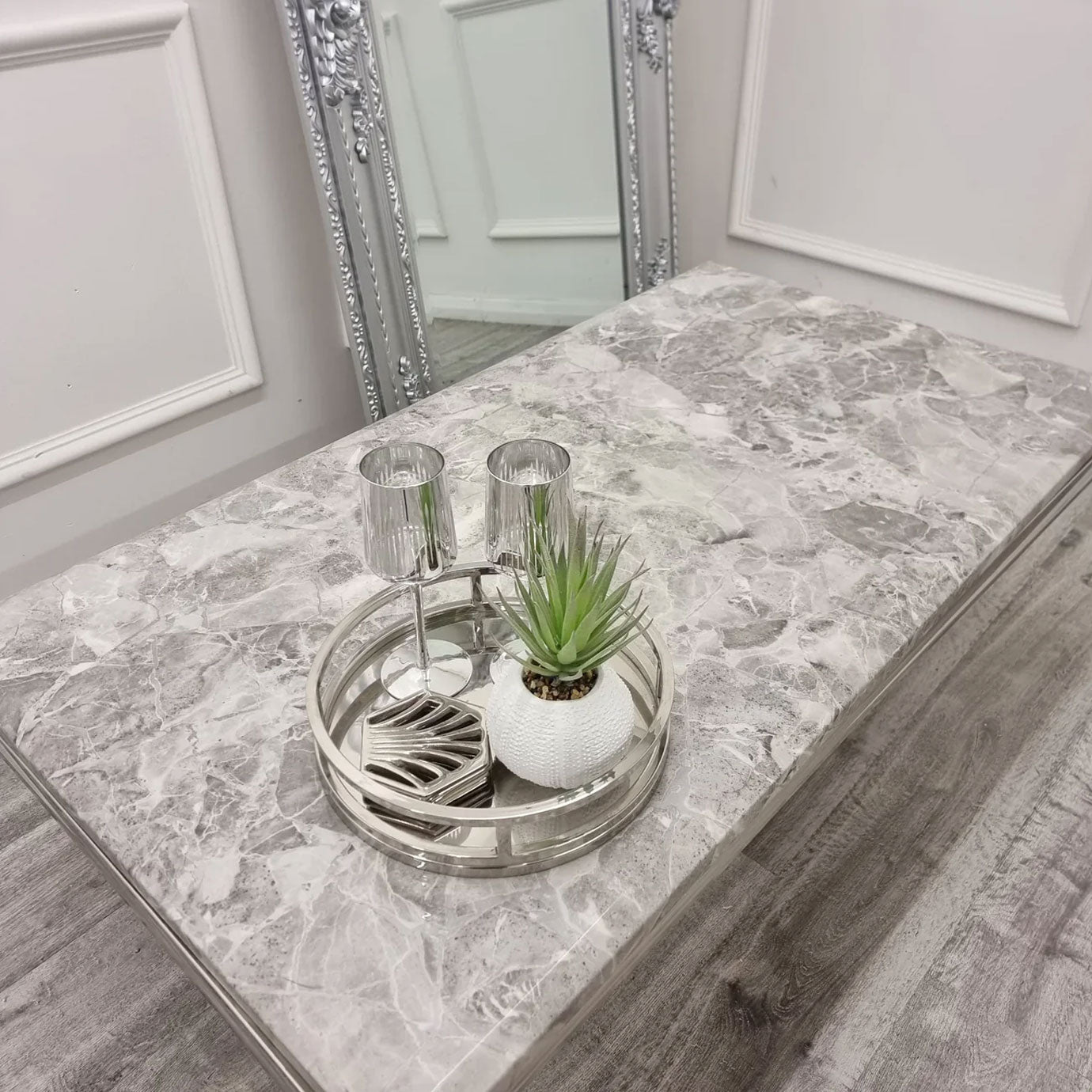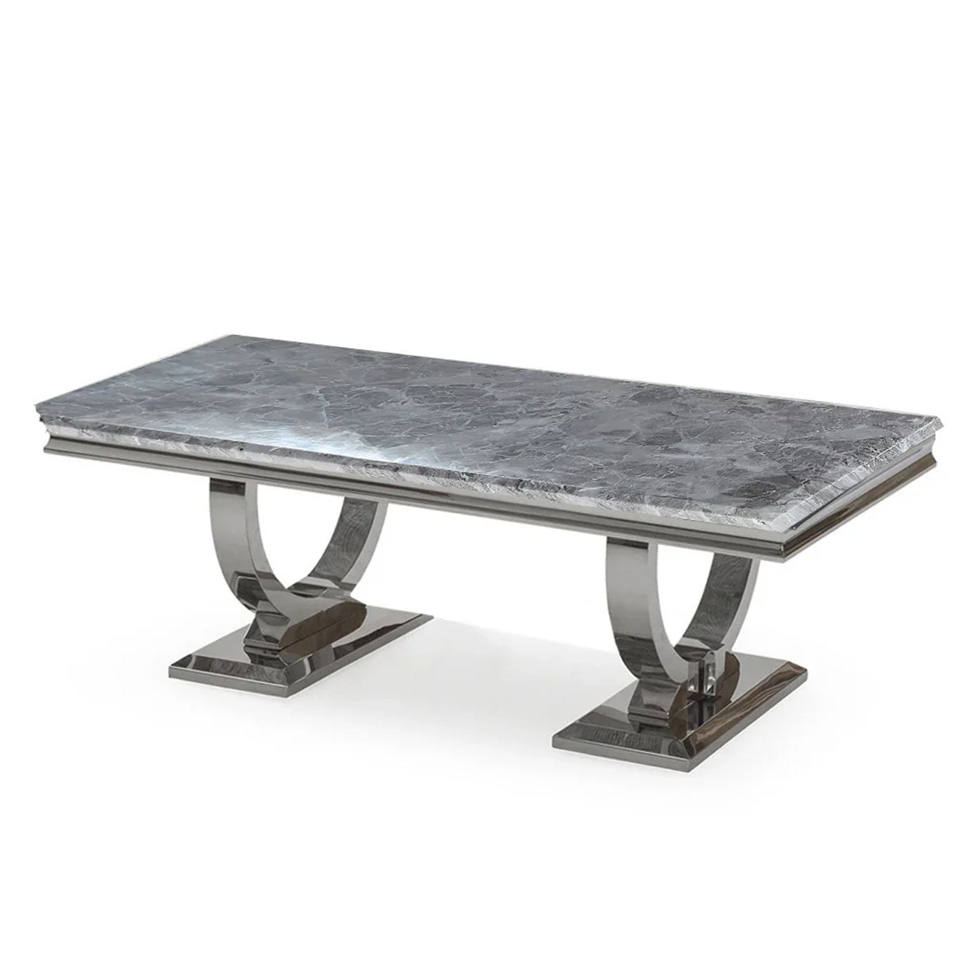 Ultra Chic and High End, the Chelsea is the Ultimate Collection for Those Who Crave Style and Glamour. Its Unique Marble Top is Supported by a Polished Stainless Steel Double Circular Base.